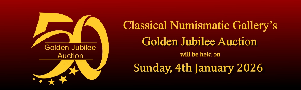 Classical Numismatic Gallery's Golden Jubilee Auction 50 will be held on Sunday, 4th January 2026. Venue: Taj Mahal Tower - Mumbai
