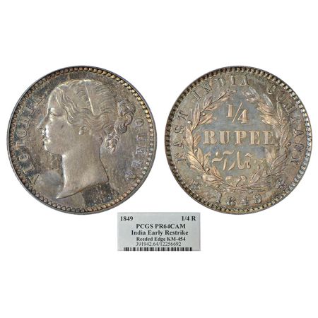 The surfaces glow with luster, enhancing the superb visual appeal of this highly desirable type. An offering certain to delight specialists in British India coinage. PCGS PR64, Exceedingly rare.