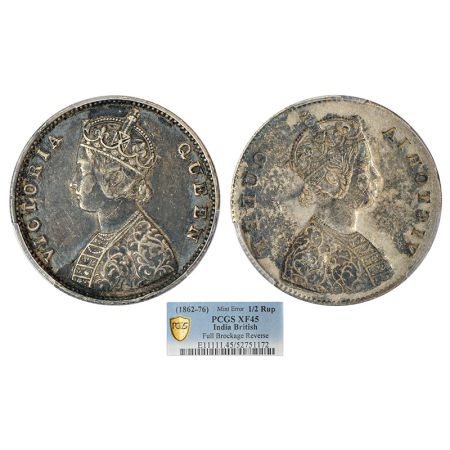 A fabulous specimen and remarkable error, certain to delight numerous collectors of British India coinage. PCGS Mint Error XF45, Full Brockage Reverse, Exceedingly rare.