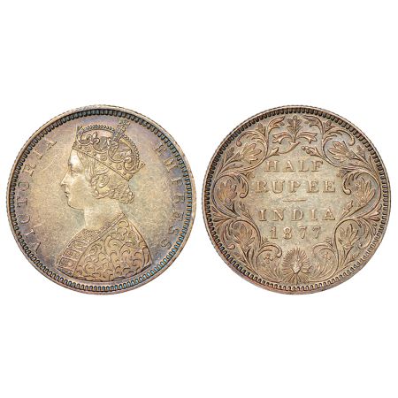 Victoria Empress, silver ½ rupee, 1877, Bombay mint, 4¼ panel in Jabot on obverse, B2/II, dot, PR 288; GK 608, 5.80g.
