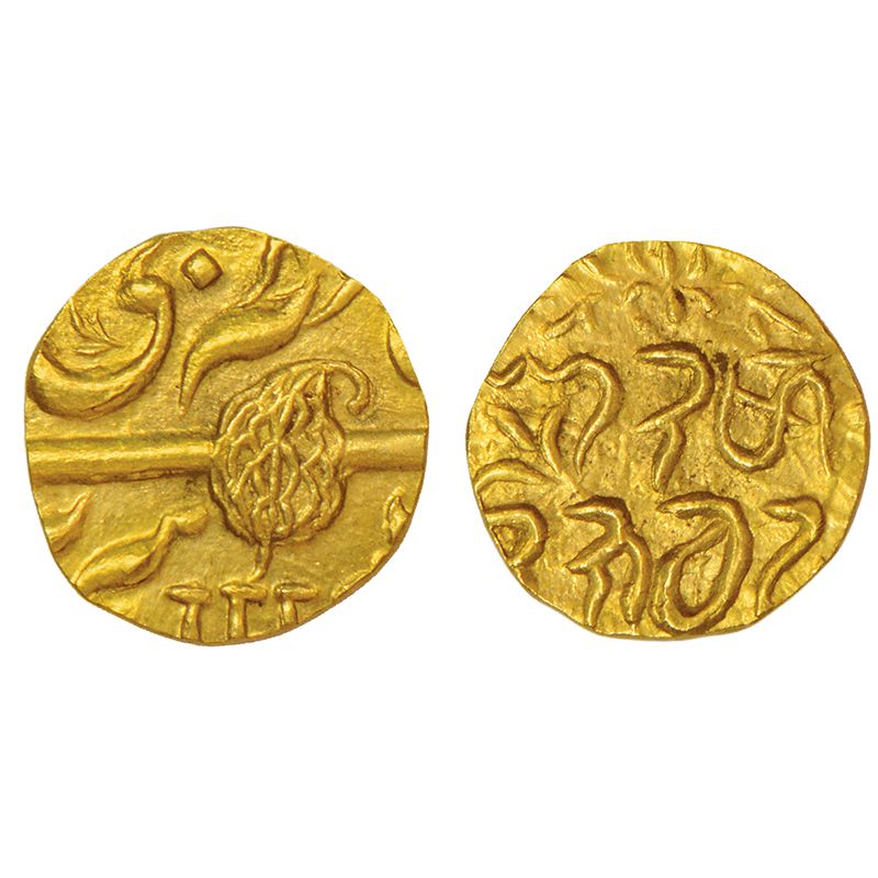 This rare gold mohur is a part of the last attempt during Tukoji Rao's reign to introduce an acceptable and stable coinage. Very rare examples of copper and silver coins proposed around this time are also known.
