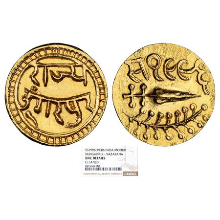 During the latter years of his reign, gold nazarana mohurs were issued in his name, perhaps as a very constricted ceremonial coinage. They reflect the fading sovereignty of princely states under British paramountcy, encapsulating a critical juncture in Dungarpur's legacy and Lakshman Singh's reign.