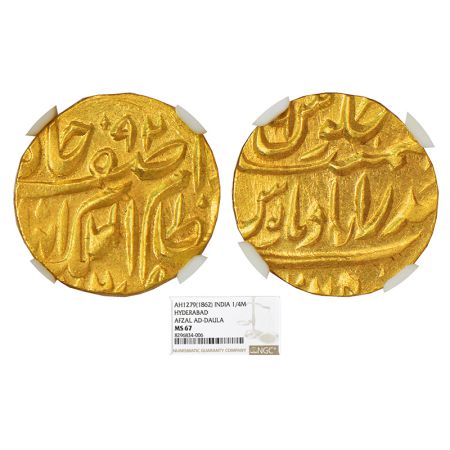 Hyderabad, Afzal-ud Daula (1857-1869 AD), gold ¼ mohur, Farkhanda Bunyad Hyderabad mint, AH 1279, KM Y9.