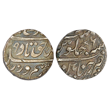 Madras Presidency, Chinapattan mint, Mughal style, silver rupee, in the name of Farrukhsiyar, AH (11)29/RY 6, star mintmark in reverse, Stevens EIC 2.25, 11.43g.