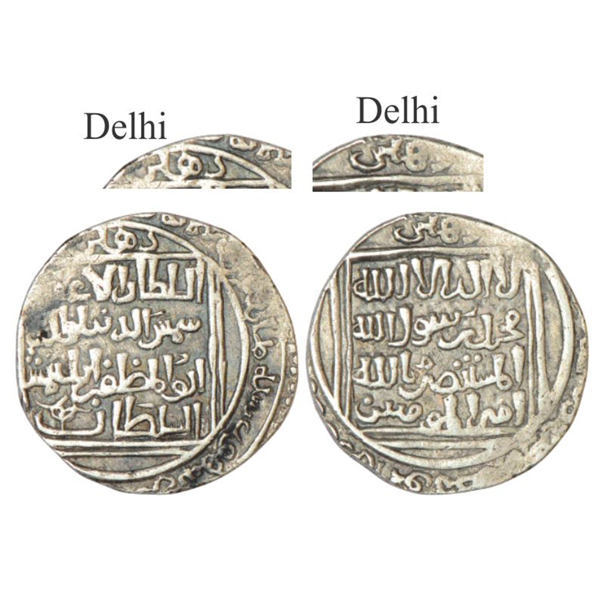 Sultans of Delhi, Tughluqs, silver tanka of Ghiyath al-Din Tughluq (1320-1325 AD), Qila Deogir mint, AH 721, mint and date clearly visible, G&G D307, 10.87g. Obv: Arabic legend al-sultan al-ghazi ghiyath al-dunya wa'l din abu'l muzzafar within double square. Rev: In circle, Arabic legend tughluq shah al-sultan nasir amir al mu'minin; date and mint details in the margin.