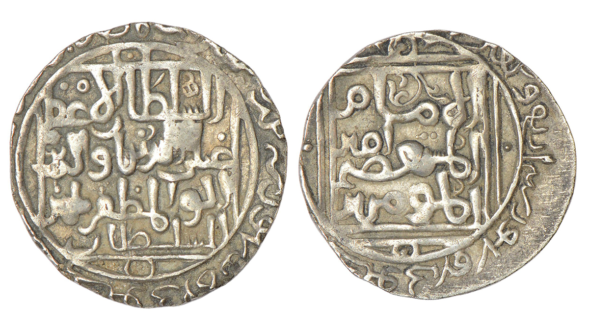Sultans of Delhi, Tughluqs, silver tanka of Ghiyath al-Din Tughluq (1320-1325 AD), Qila Deogir mint, AH 721, mint and date clearly visible, G&G D307, 10.87g. Obv: Arabic legend al-sultan al-ghazi ghiyath al-dunya wa'l din abu'l muzzafar within double square. Rev: In circle, Arabic legend tughluq shah al-sultan nasir amir al mu'minin; date and mint details in the margin.