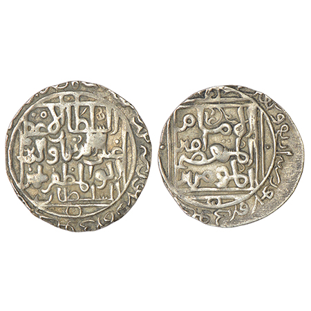 Sultans of Delhi, Tughluqs, silver tanka of Ghiyath al-Din Tughluq (1320-1325 AD), Qila Deogir mint, AH 721, mint and date clearly visible, G&G D307, 10.87g. Obv: Arabic legend al-sultan al-ghazi ghiyath al-dunya wa'l din abu'l muzzafar within double square. Rev: In circle, Arabic legend tughluq shah al-sultan nasir amir al mu'minin; date and mint details in the margin.