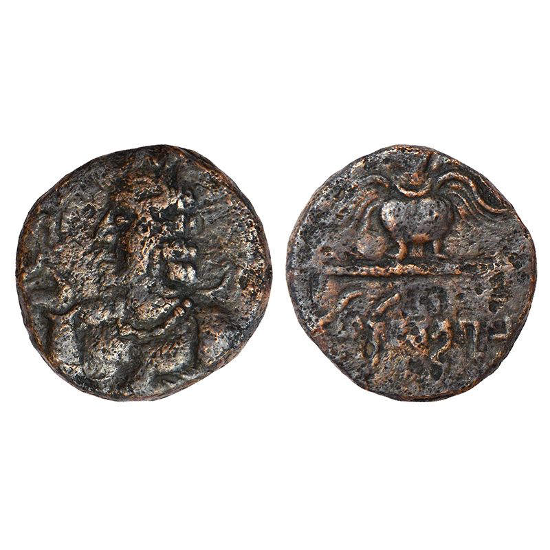 Gupta Empire - copper coin of Chandragupta II (c.375-415 AD), full unit, S. Kumar class III, 18.86mm; 5.82g. Obv: chest-high bust of king, with cascading curly hair, wearing necklace facing left, holding up a flower in a gesture of appreciation. Rev: Garuda standing facing on a pedestal; Brahmi legend Maharaja Chandragupta below.