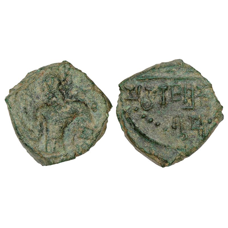 Gupta Empire - copper coin of Kumara Gupta I (c.415-450 AD), 'Chhatra'-type, S. Kumar p.335, 19.07mm; 5.03g. Obv: king standing facing left, in a gesture of royal appreciation. Rev: Garuda (off the flan), Brahmi legend in two lines Maharaja Shri Ku(mara)/Gupta below.