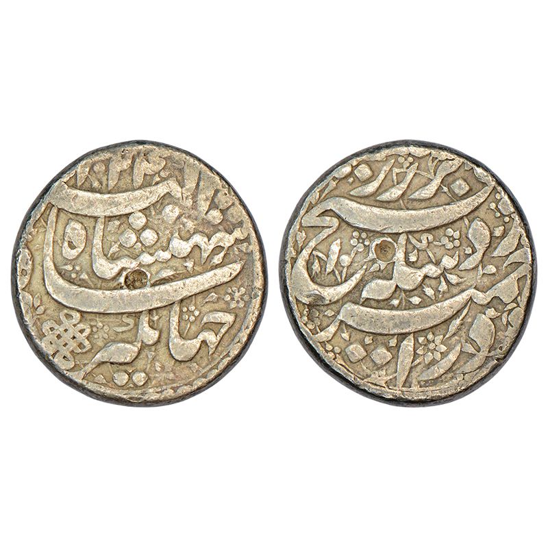 Jahangir (1605-1627 AD), silver rupee, Ahmadnagar mint, AH 1035?, unlisted in KM, 11.38g. Obv: Pers...