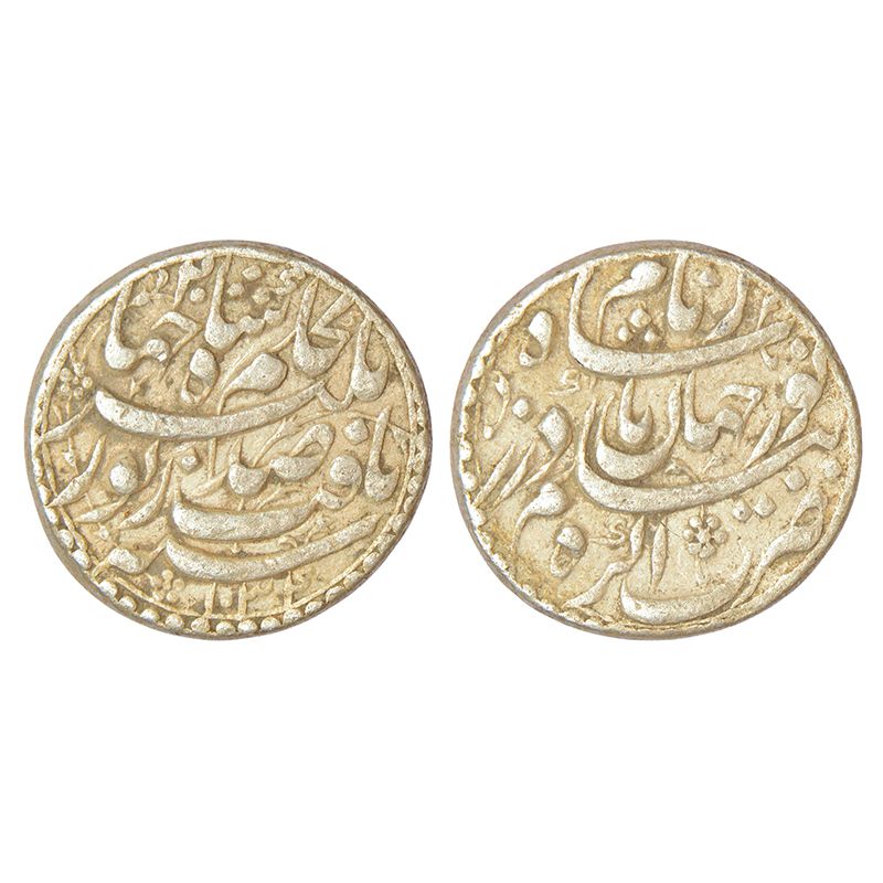 Jahangir with the name of Noor Jahan (1623-1627 AD), silver rupee, Agra mint, 'Sad Zewar' couplet, 1034/RY 20, KM 168.1, 11.38g. Obv: Farsi hemistich ba-Hukm-i Shah Jahangir Yaft Sad Zewar with AH and RY date. Rev: Farsi hemistich Za Naame Noorjahan Badshah Begam Zar with mint-name at bottom.