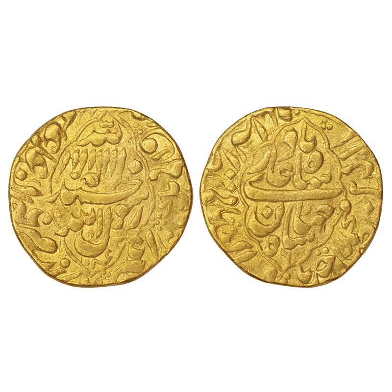 Shah Jahan (1628-1658 AD), gold mohur, Akbarabad mint, AH 1049/RY 13, KM 258.1, 23.02mm, 10.81g. Ob...