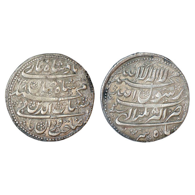Shah Jahan (1627-1658 AD) - silver 'Nazarana' rupee, 'Shahada above mintname' type, Akbarnagar mint, Tir (Cancer) month, AH 1038/RY 2, 28.50mm, 11.04g. Obv: full name of the emperor Sahib Qiran Thāni Shihab al-Din Muhammad Shahjahan Badshah Ghazi and AH date. Rev: Shahada with mint name with RY and month below.