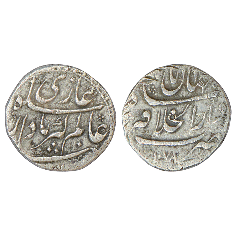 Azam Shah (1707 AD), silver rupee, Ahmadabad mint (fully visible), 'Ba-Daulat Wa Jah' couplet, AH 1...