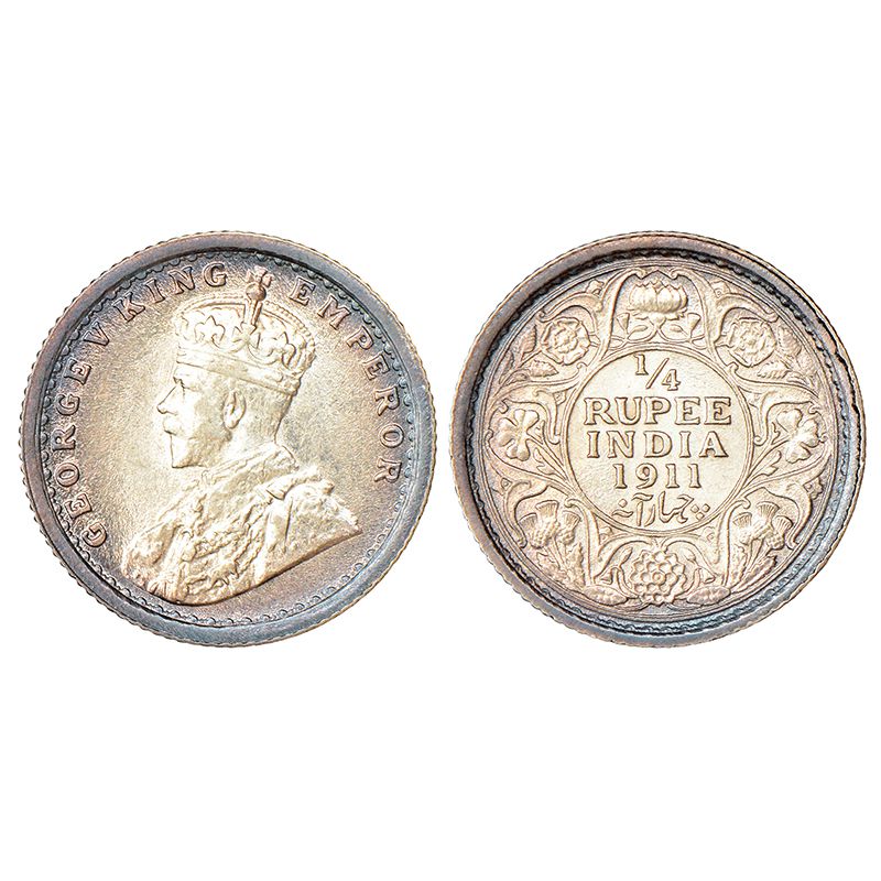 George V, silver rupee, 1919, Bombay mint, dot, plain edge, beautiful mint error, broadly struck wi...