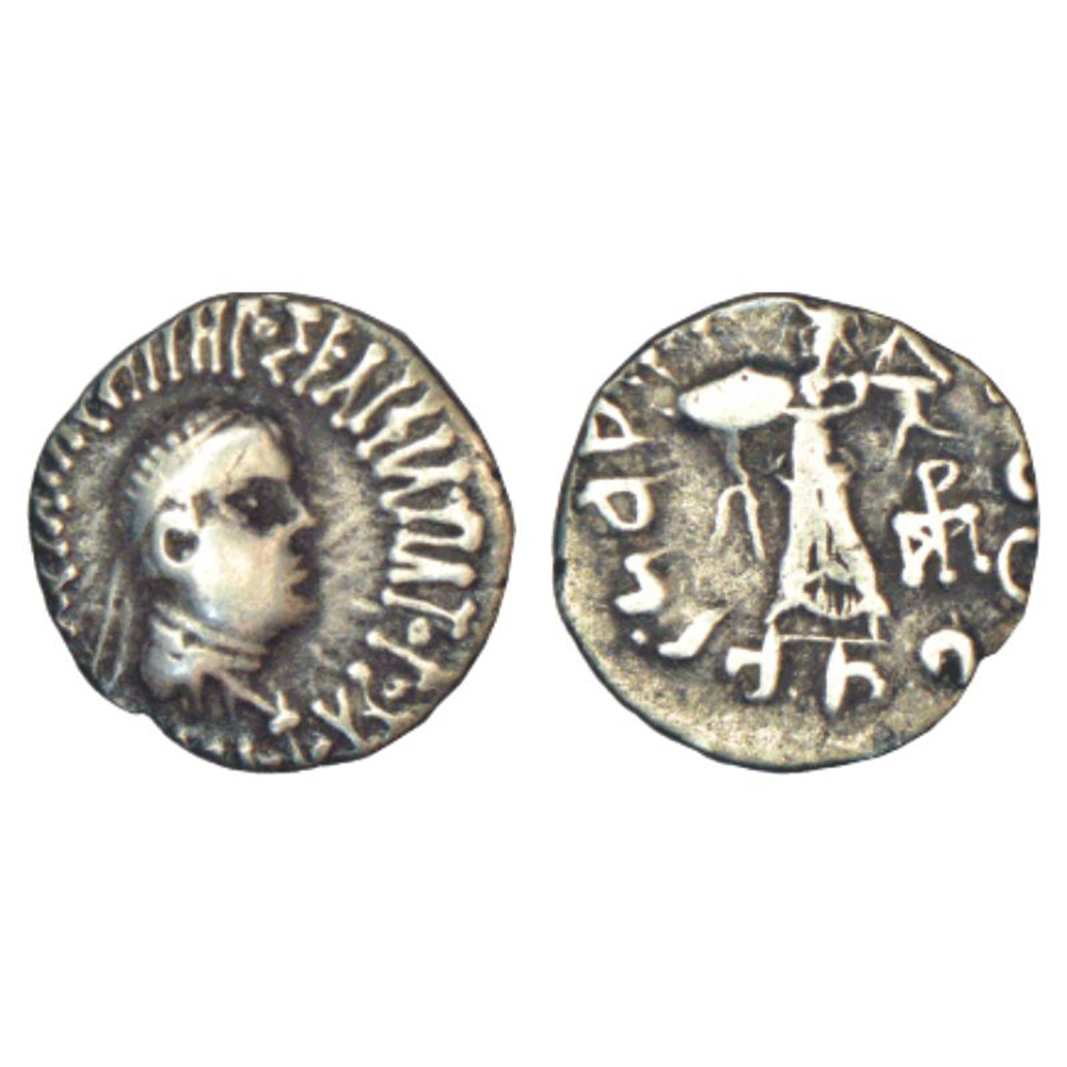 Indo-Greeks - silver drachm of Apollodotos II (c.85-65 BC), BN serie 2D, 2.20g. Obv: Diademed and draped bust facing right; Greek legend BASILEOS SOTEROS KAI PhILOPATOROS APOLLODOTOU visible in parts. Rev: Athena Alkidemos advancing to left, shield decorated with aegis over arm, hurling thunderbolt, monogram to right; Kharoshthi legend Maharajasa Tratarasa Apaladatasa around.