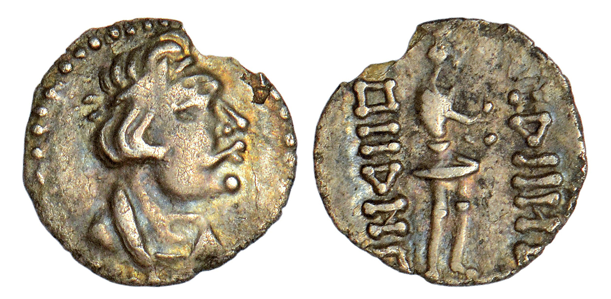 Western Kshatrapas, Kshaharata dynasty, Nahapana (33-78 AD), silver drachm, Fishman 3.1, 2.22g. Obv...