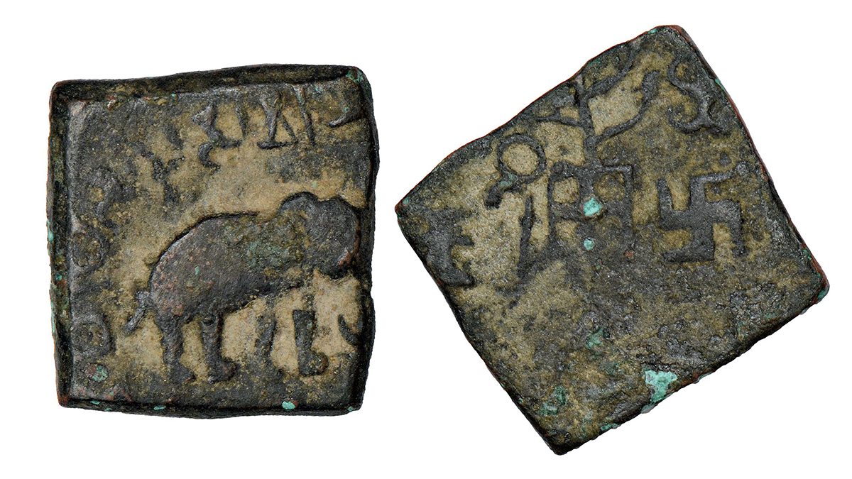 Maharathis of Vidarbha - alloyed copper coin of Maharathi Samata, (c.150-200 AD), double struck, 4....