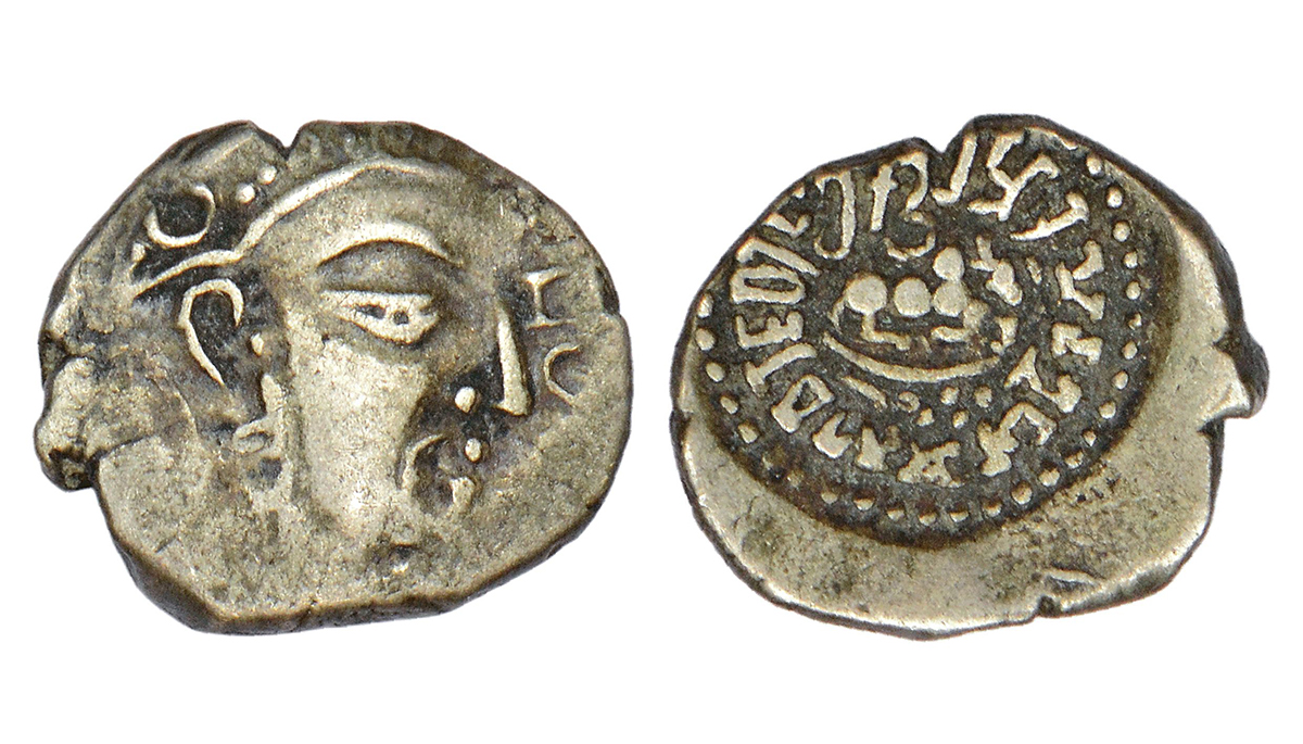 Gupta Empire - silver drachm of Skanda Gupta (c.450-475 AD), Western India/Gujarat 'bull' type, S. Kumar Var. B, PAIC 3601, 1.80g. Obv: Bust of the king facing right. Rev: Seated bull facing right in centre; Brahmi legend Paramabhagava Rajadhiraja Sri Skandagupta kramaditya around.