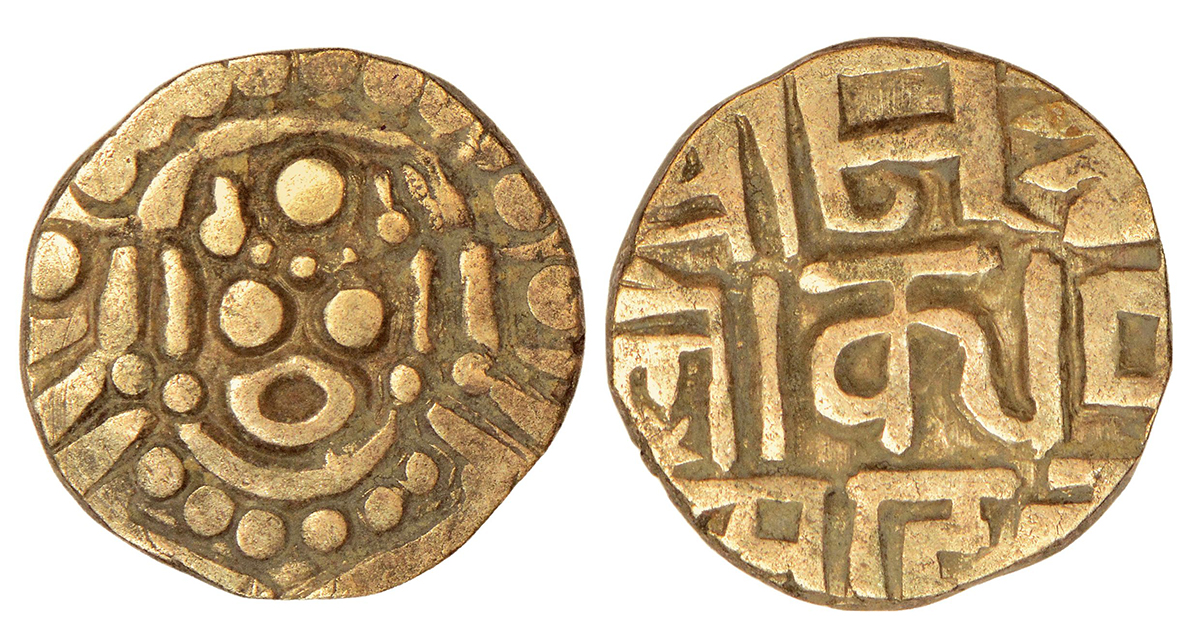 Yadavas of Devagiri, Mahadeva (1261-1270 AD), gold punch-marked Asu or 'Padma Tanka', MSCI-I no. 28...
