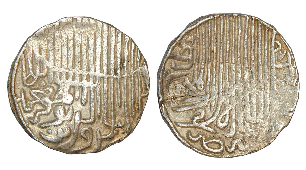 Sultans of Bengal, Silver tanka of Nasir al-Din Mahmud (1433-1459 AD), Dar al-Darb mint, 'Seven cir...