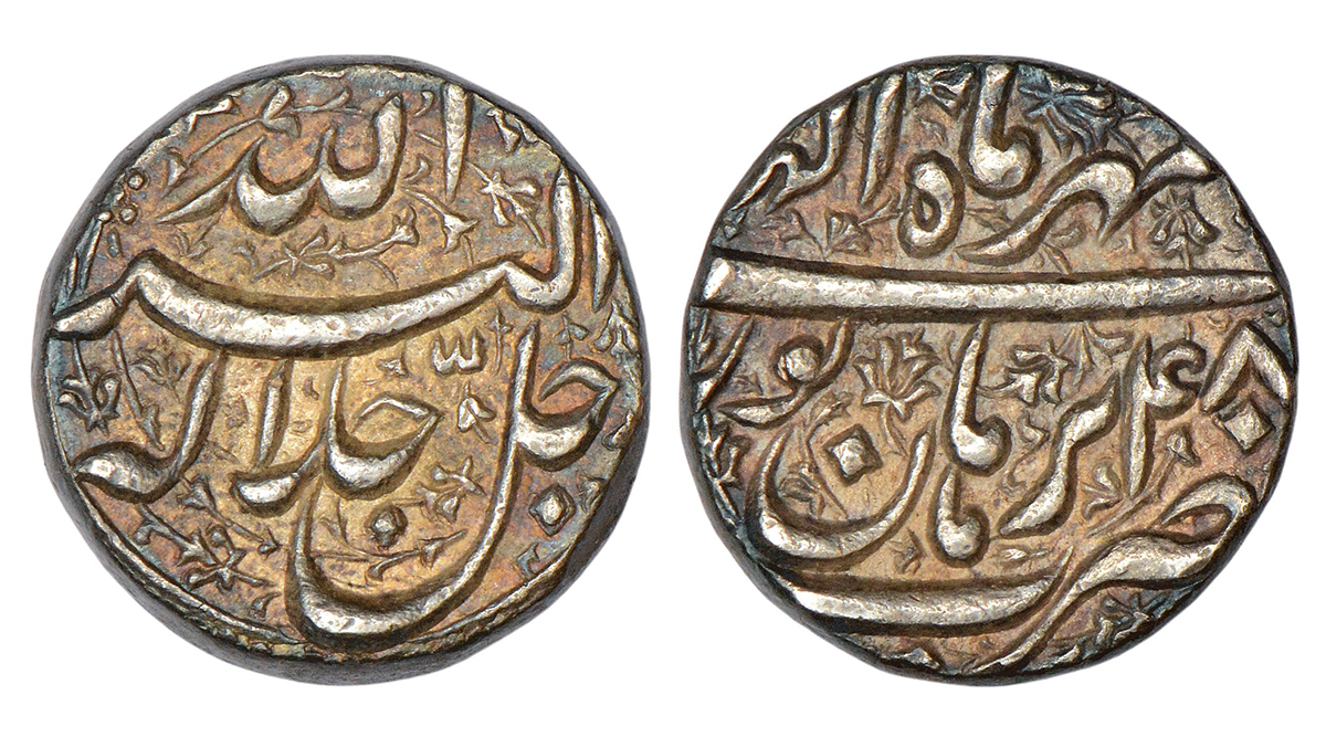 Akbar (1556-1605 AD), silver rupee, Allahabad mint, rebellion issue of Jahangir, 'Hamisha' couplet,...