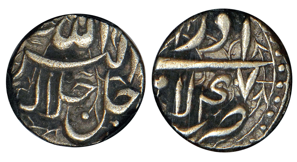 Akbar (1556-1605 AD), silver rupee, Lahore mint, Khurdad, Ilahi 50 (last year of ruler), KM 94.3, 1...