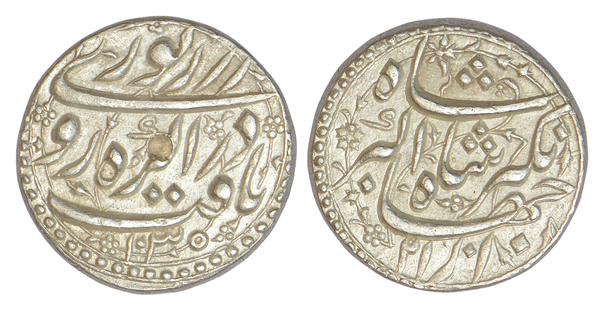 Jahangir (1605-1627 AD), silver rupee, Agra mint, 'Yaft' couplet, AH 1035/RY 21, KM 149.1, 11.42g. Obv: Farsi hemistich Rooye Zar Zewar yaft dar Agrah with AH date below. Rev: Farsi hemistich az Jahangir Shah Akbar Shah [the face of gold was given light in Agra, by king Jahangir (the son of) king Akbar] with RY below.