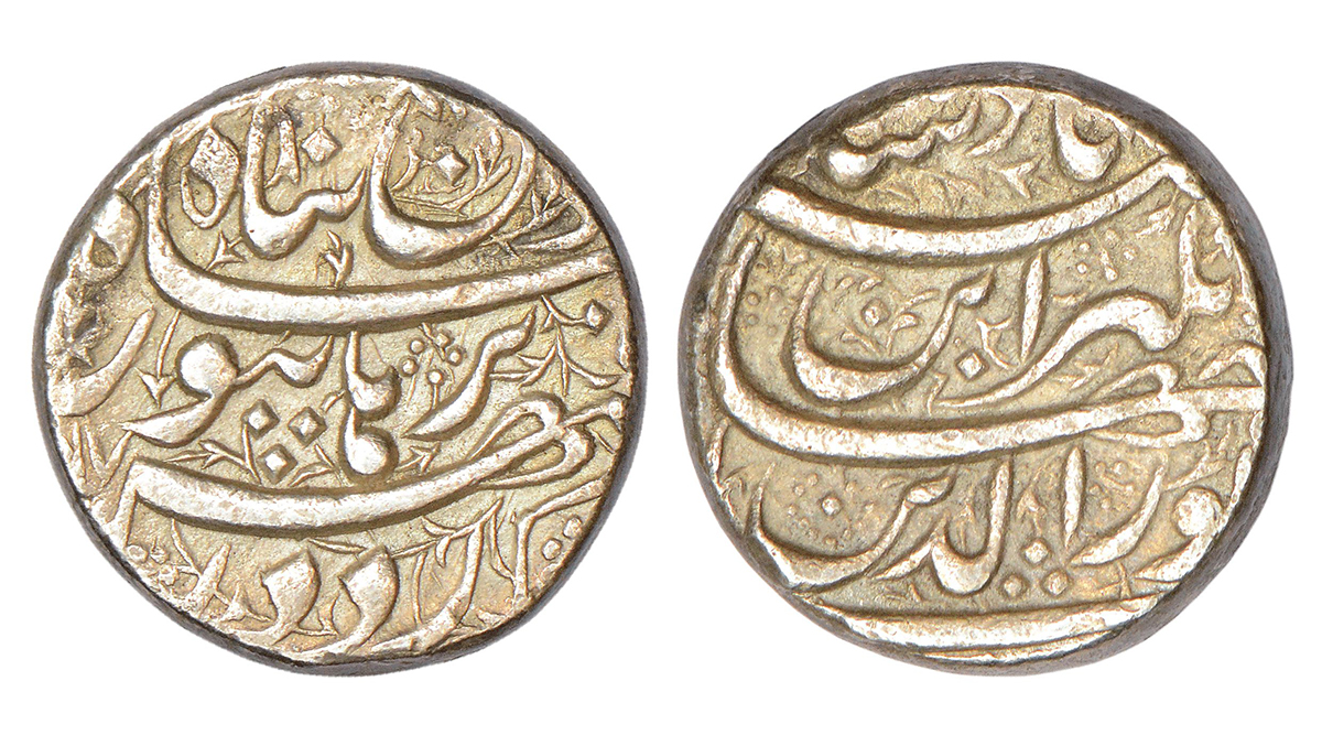 Jahangir (1605-1627 AD), silver rupee, Akbarnagar mint, 'Nur ud-din' type, Bahman, AH 1023/RY 9, KM...