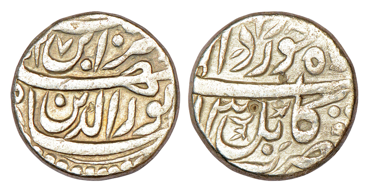Jahangir (1605-1627 AD), silver rupee, Elichpur mint (partly visible), 'Nur-ud-din' type, AH 1015, ...