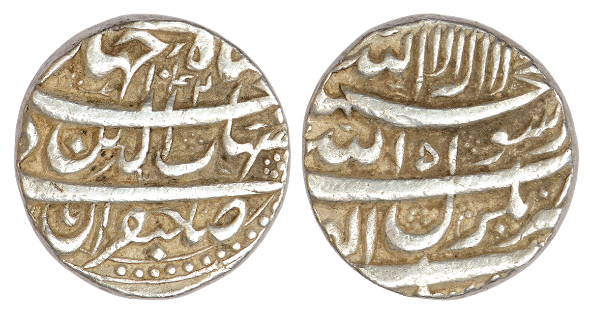 Shah Jahan (1628-1653 AD), silver rupee, Bhakkar mint, AH 1042/RY 5, KM 227.4, word 'Sahib-e-Qiran ...