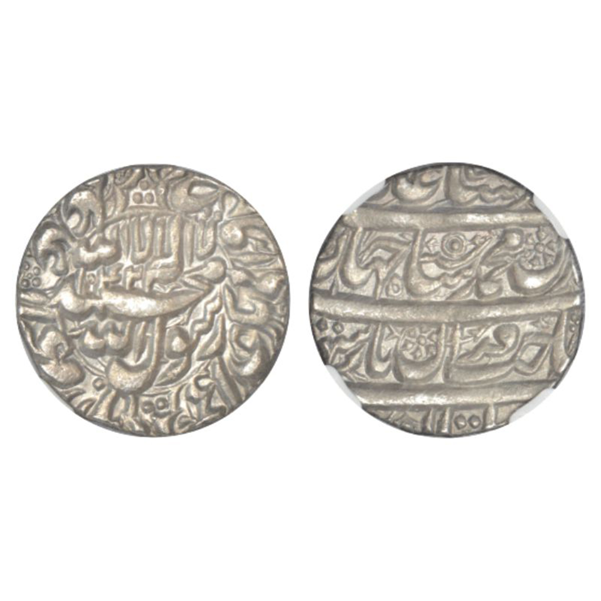 Shah Jahan (1628-1658 AD), silver rupee, Qandhar (Deccan) mint in left quadrant, 'square areas' typ...