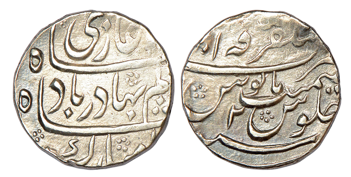 Shah Alam Bahadur (1707-1712 AD), silver heavy weight rupee, Azimabad mint, AH 1123/RY 5, similar t...
