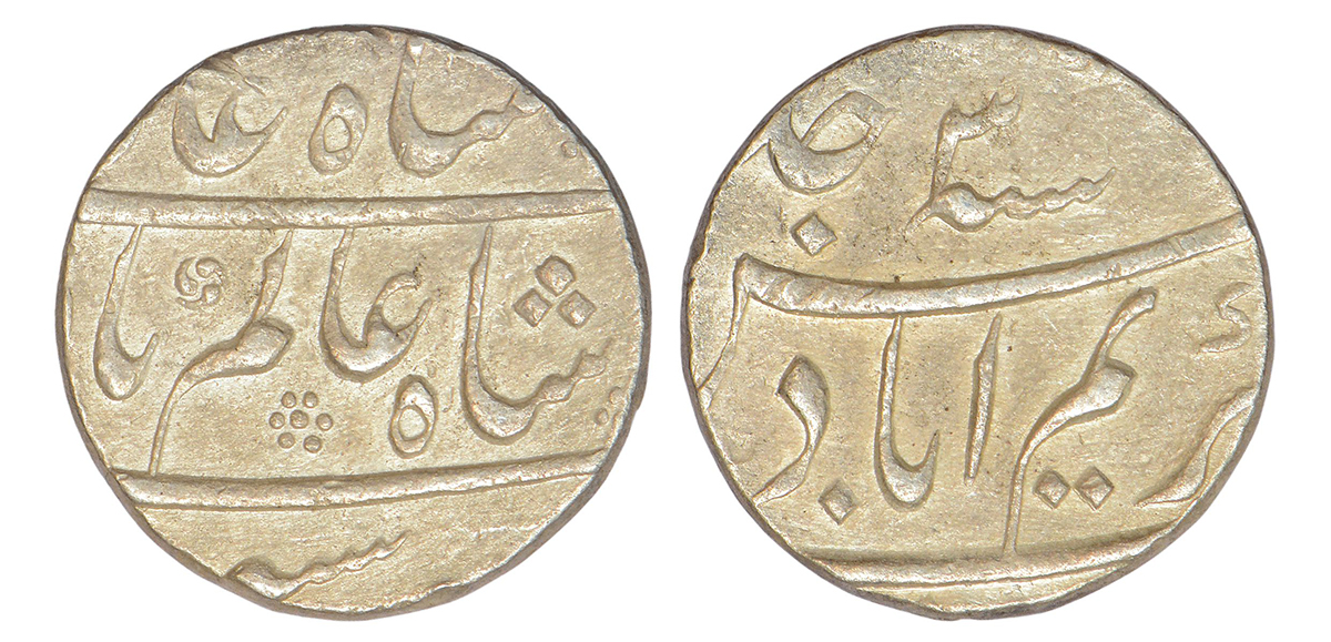 Shah Alam Bahadur (1707-1712 AD), silver heavy weight rupee, Karimabad mint, RY 5, similar to KM 34...