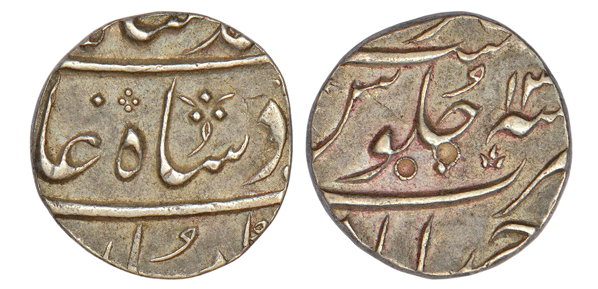 Shah Jahan II (1719 AD), silver rupee, Dar ul-Khilafat Shahjahanabad mint, RY Ahd, unusual feature ...
