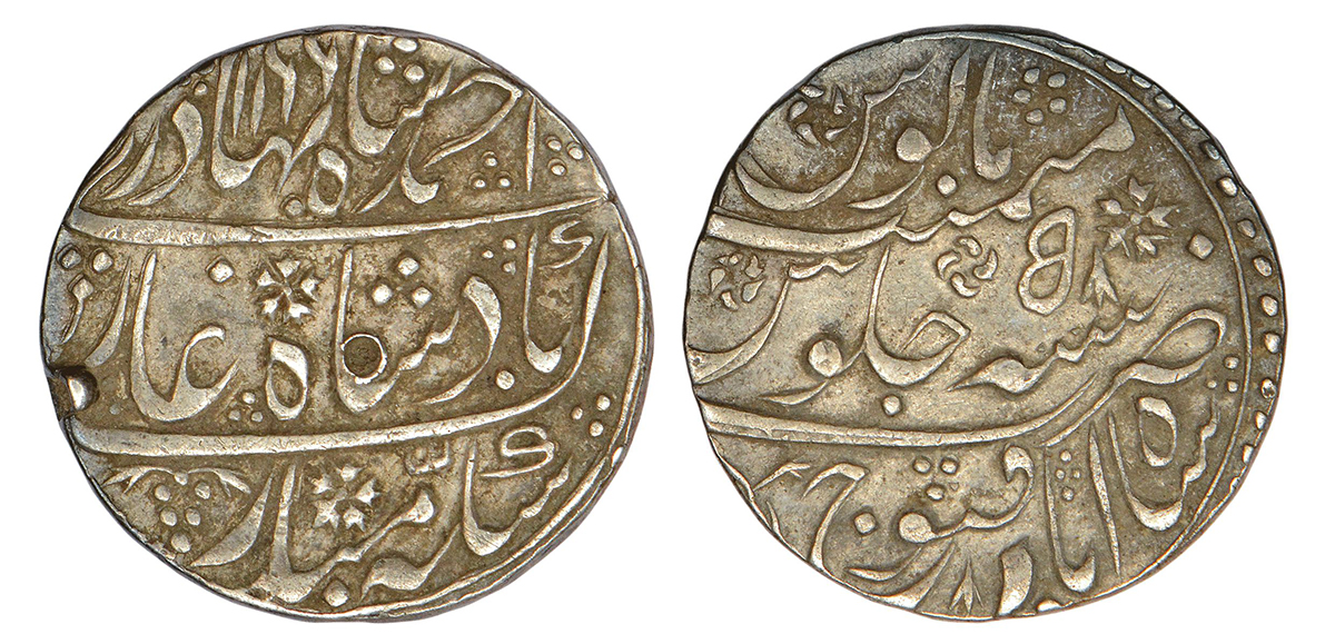 Ahmad Shah Bahadur (1748-1754 AD), silver rupee, Shahabad Qanauj mint, AH 1166/RY 5, KM 446.34, 11.23g.