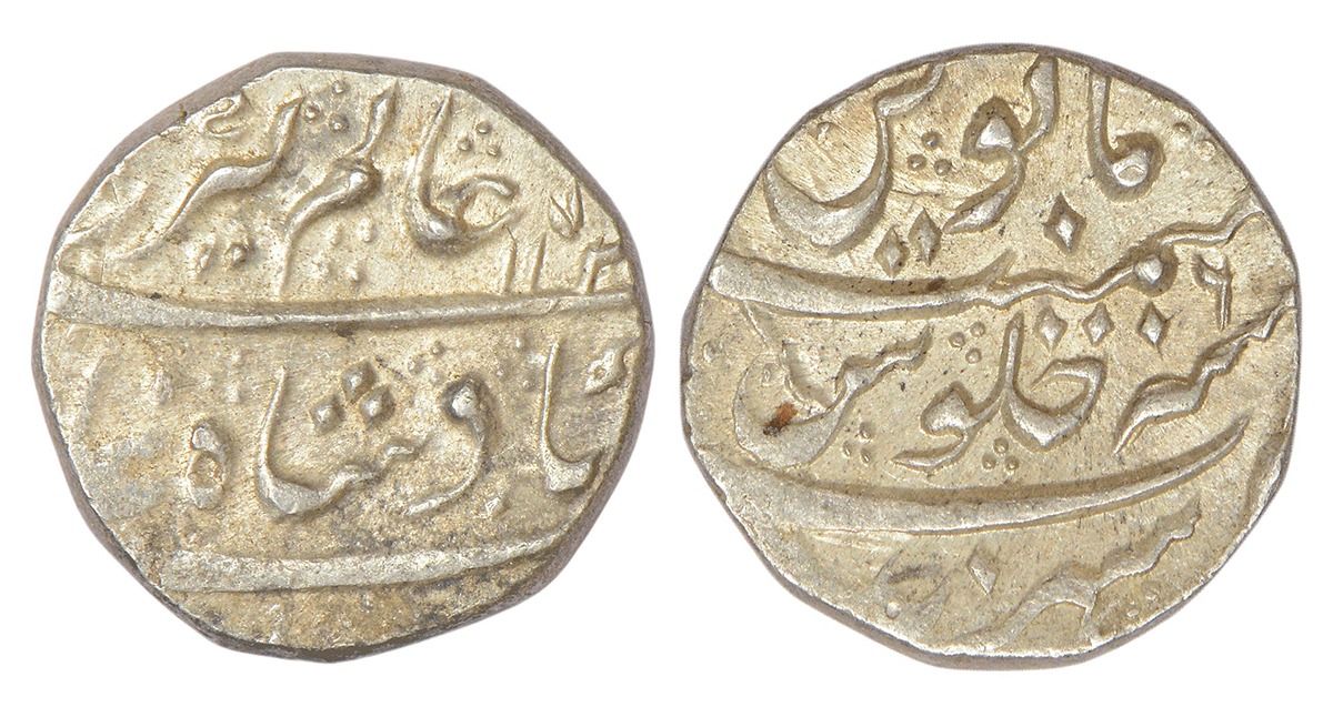 Maratha Confederacy, domains of the Peshwas - silver rupee in the name of Muhammad Shah, Balwantnag...