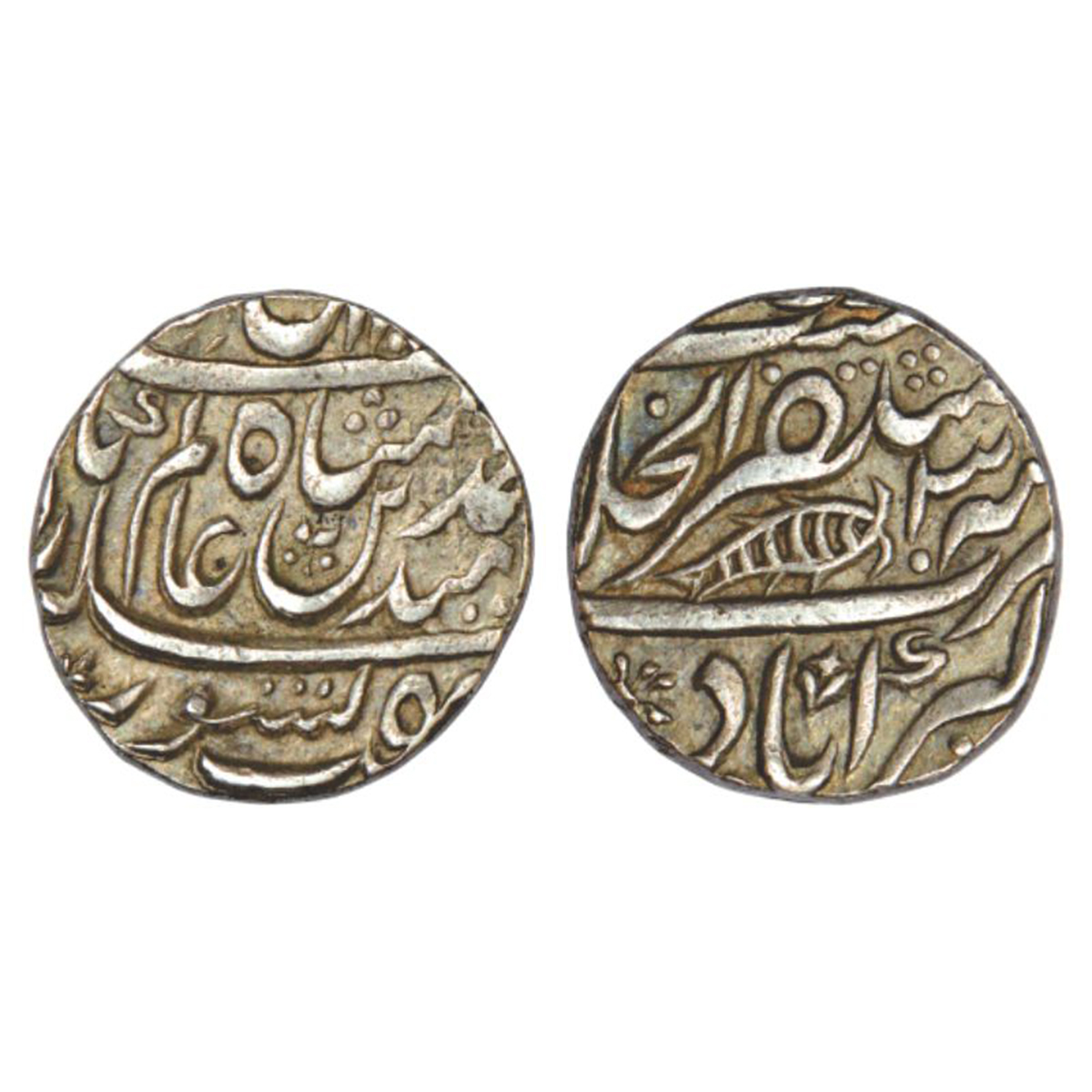 Maratha Confederacy, silver rupee, Mustaqir ul-Khilafat Akbarabad mint, in the name of Shah Alam II, RY 3x, fish mint-mark on reverse, similar M&W T1d, 11.19g.