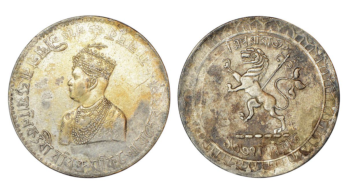 Tripura, Vira Vikrama Kishora Deb Barman (1923-1947 AD), silver rupee, SE 1337, R&B T302; KM X7, 12.23g. Obv: Portrait bust of King; around legend. Rev: Lion rampant left, date below.