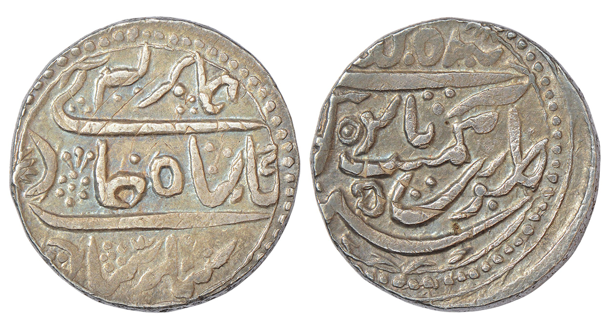 Bikanir, Gaj Singh (1746-1786 AD), Mughal style, silver 'Nazarana' rupee, Baldat Bikanir mint, in the name of Alamgir II, RY 5, KM 10a (listed as Nazarana), 11.25g.