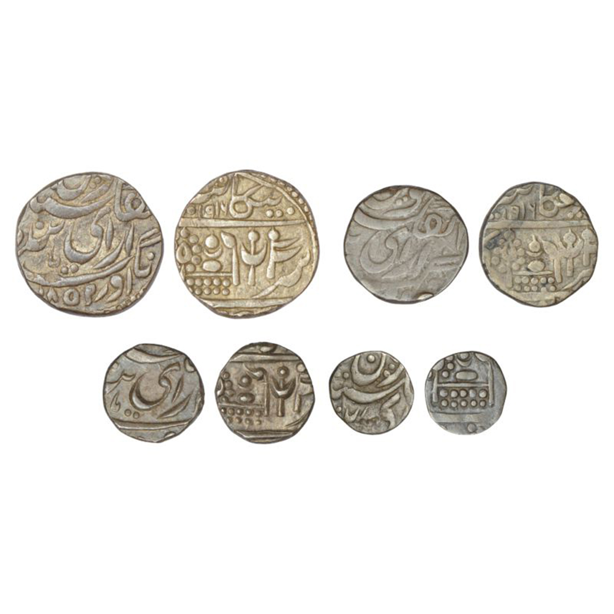 Bikanir, Dungar Singh (1872-1887AD), set of 4 silver coins, in the name of Queen Victoria, 1x rupee, VS 1916, KM 54, 11.38g; 1x ½ rupee, VS 1916, KM 53, 5.68g; 1x ¼ rupee, KM 52, 2.84g and 1x ⅛ rupee, KM 51, 1.43g. (4 coins)