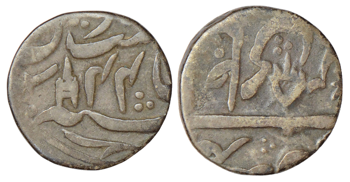 Bindraban, silver ¼ rupee, in the name of Shah Alam II, RY 44, 'Umbrella' on obverse and 'Scimitar ...