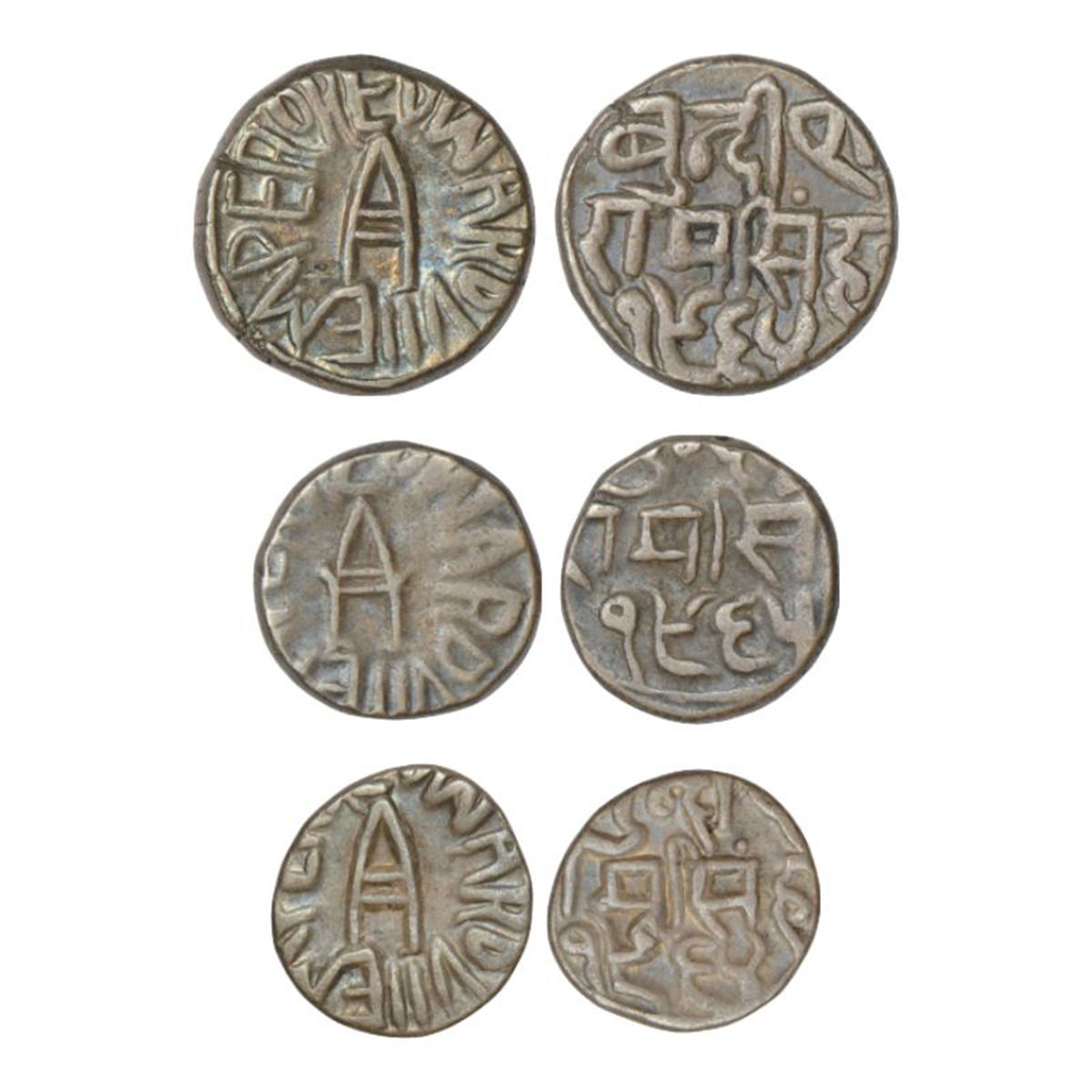 Bundi, Raghubir Singh (1889-1927 AD), set of 3 silver coins, with the name of Edward VII, 1x rupee, VS 1964, KM Y14, 10.65g; 1x ½ rupee, VS 1965, KM Y13, 5.30g and 1x ¼ rupee, VS 1964, KM Y12, 2.65g. Obv: English legend EMPEROR EDWARD VII around, with Katar symbol in center. Rev: Devanagari legend Bundish Ram Singh and VS date. (3 coins)