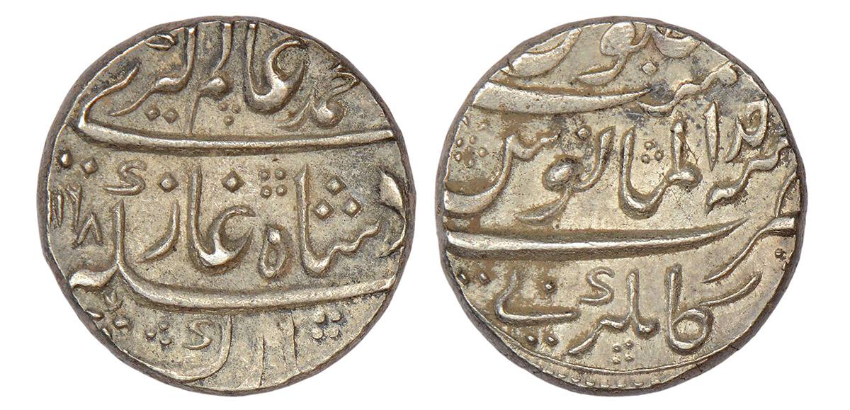 Hyderabad Feudatories, silver rupee, Ausa mint, in the name of Alamgir II, AH 117(1)/RY 4, a floral...