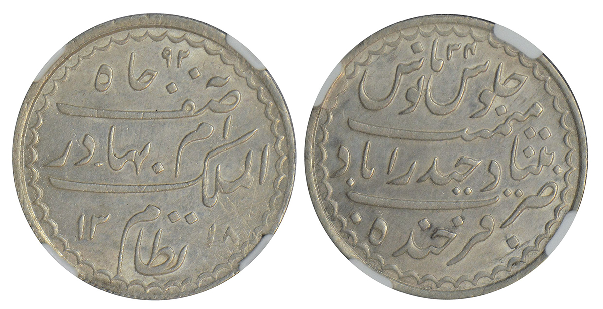 Hyderabad, Mir Mahbub Ali Khan (1869-1911 AD), set of 5 silver coins, Farkhanda Bunyad Hyderabad mi...
