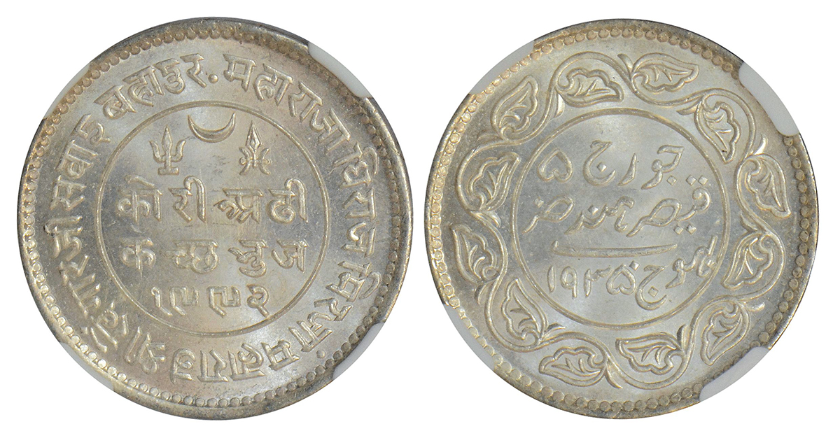Kutch, Khengarji III (1875-1942 AD), silver 2½ kori, VS 1992/AD 1935, with the name of George V, DR-K 232.39.