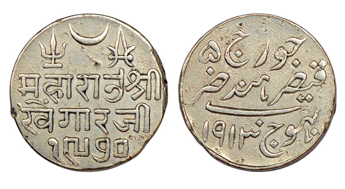 Kutch, Khengarji III (1875-1942 AD), silver kori, VS 1970/AD 1913, with the name of George V, DR-K 230.1, 4.64g.