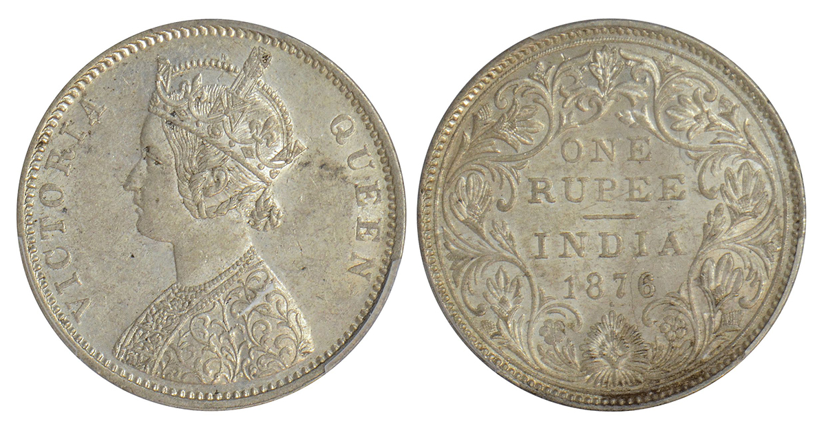 Victoria Queen, silver rupee, 1876, Bombay mint, A2/II/dot, PR 147; GK 430.