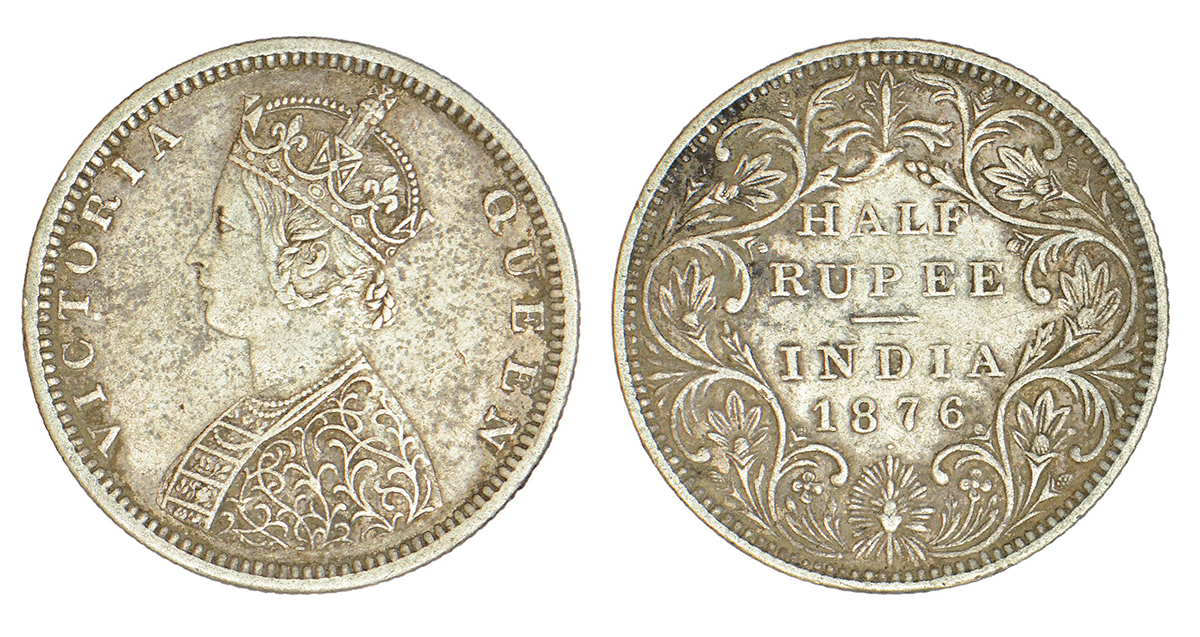 Victoria Queen, silver ½ rupee, 1876, Bombay mint, B2/II/dot, PR 287; GK 606, 5.78g.