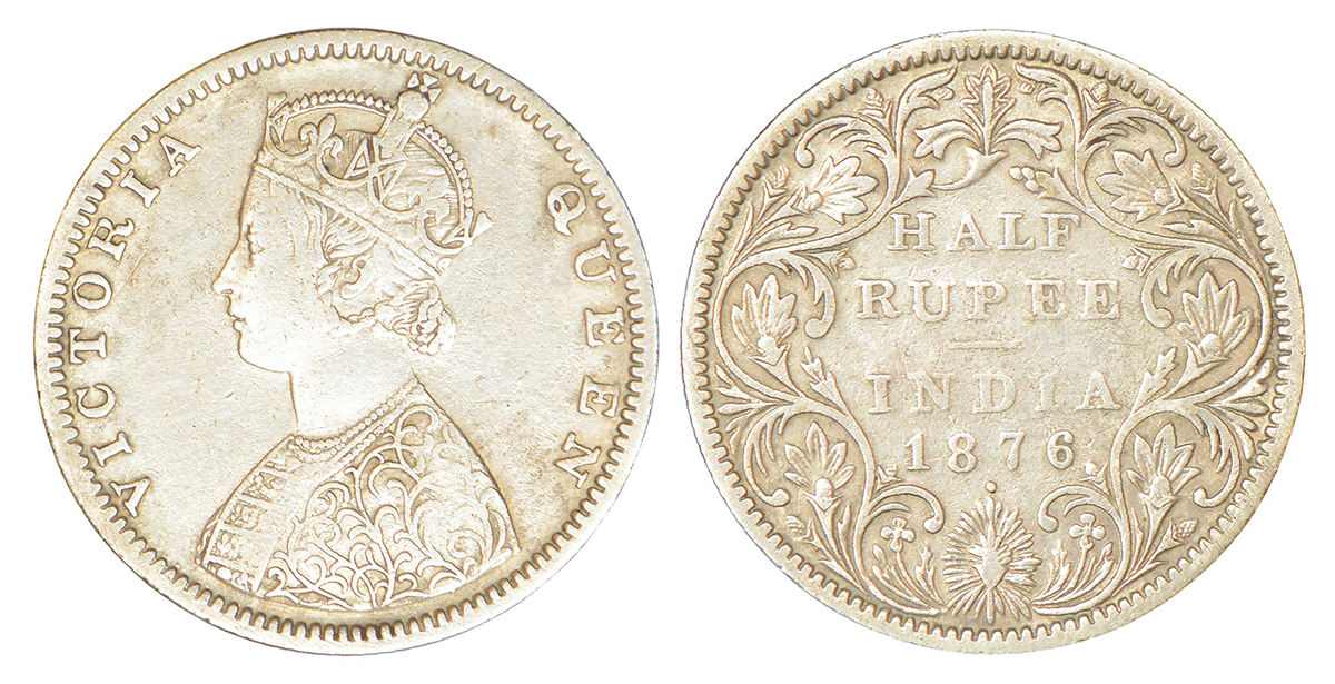 Victoria Queen, silver ½ rupee, 1876, Bombay mint, B2/II/dot, PR 287; GK 606, 5.62g.